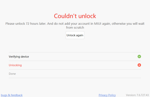 Начать разблокировкуАккаунт был привязан к Китаю, хотя телефон был российского региона (RU). Постоянно возникала ошибка аккаунта при подаче заявки, даже на уровне 3 в Mi Community.